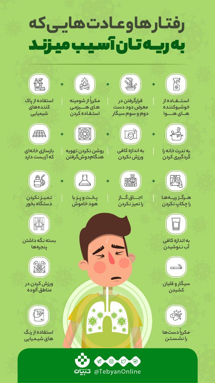 صفحه اصلی/ویروس کرونا/رفتار های آسیب زا برای ریه ویروس کرونا رفتار های آسیب زا برای ریه عماد22 اسفند 1398 مشخصات منبع: تبیان برچسبها#اینفوگرافی اینفوگرافیک کرونا محتوا نشر ویروس ویروس کرونا عماد22 اسفند 1398